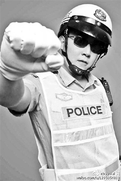 北青报记者了解到,杨颢博是海淀交通支队公主坟大队交通民警,曾因跳宣传交通手势的“小苹果”舞在网上走红。