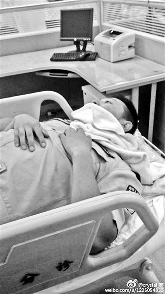 昨晚10时许,网友crystal_芸发微博称,京城最炫“小苹果”交警杨颢博13日下午在纠正一辆违法车辆时,被司机错把油门当刹车将其撞飞。杨颢博腰部、手臂等多处受伤无法行动。这名网友上传了一名身穿交警服装的男子躺在担架上的照片。