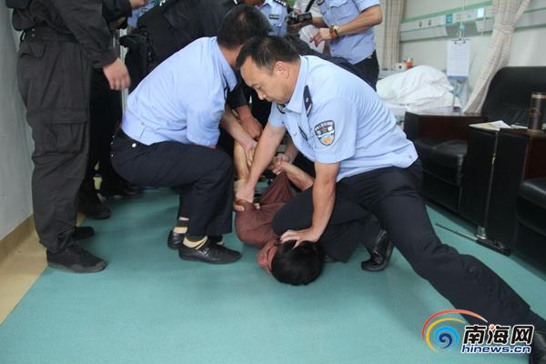 “当时这名男子陶某一手搂住女护士的脖子,另一只手拿着的尖刀,一直抵着女护士的脖子,情况十分紧急。”海口市公安局秀英分局政治部主任章鹏彪说,由于劫持人质现场是一处封闭的病房,只有一扇门能进出,但陶某已经把房门反锁。警方一旦采取破门的强攻,尽管过程短暂,但陶某很有可能在这期间伤害被劫持的女护士。