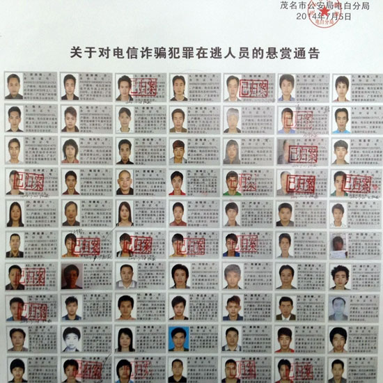 警方张贴了上千张电信诈骗通缉令,目前已经多名疑犯投案自首
