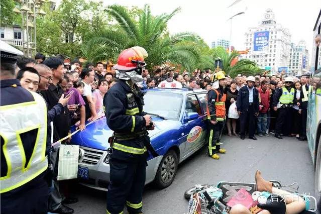 江苏骑车女子被出租车开门撞倒 头部遭公交碾压
